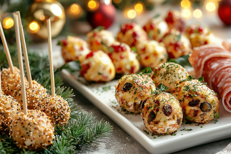 1. Сырные шарики с черносливом. Мелко нарежьте отварное куриное филе, добавьте тертый сыр, творожный сыр, специи и мягкий чернослив. Сформируйте шарики и обваляйте их в дробленых фисташках или кунжуте — выглядят празднично и очень нежные.