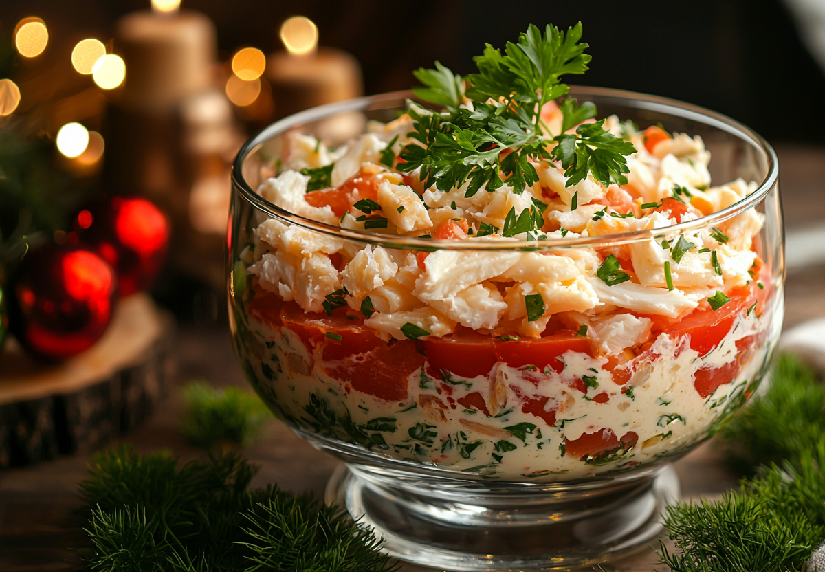4 ингредиента и 10 минут: готовим «Снежную милю» на Новый год — обалденный салат с копченой ноткой