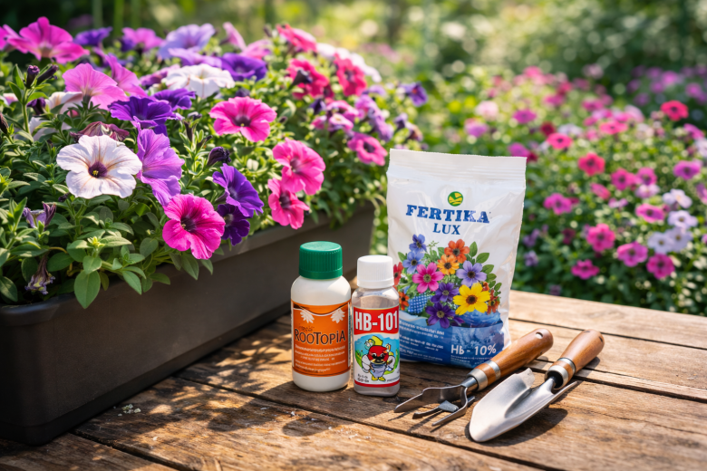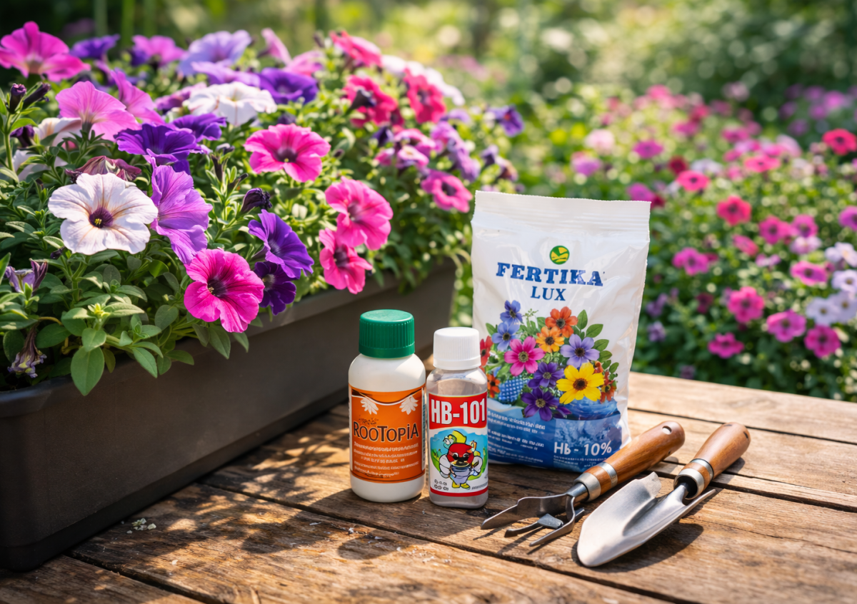 Петуния может цвести все лето густыми шапками, но только если у растения сильная корневая система и хватает питания. Многие садоводы замечают: стоит дать правильные подкормки — и кусты быстро наращивают зеленую массу, а затем буквально усыпаются бутонами.
