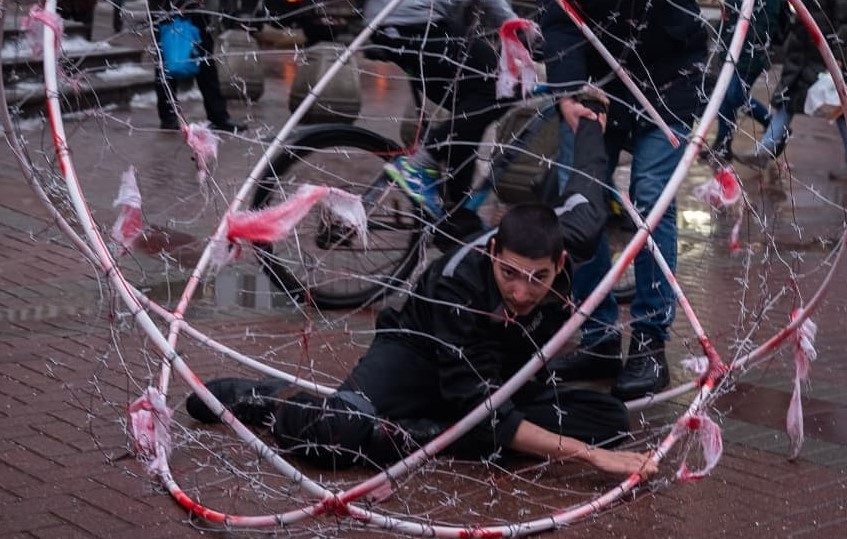 24 января Крисевич забрался в сферу из колючей проволоки и выкрикивал политические лозунги. Он отбыл 14 суток ареста за неповиновение сотруднику полиции.