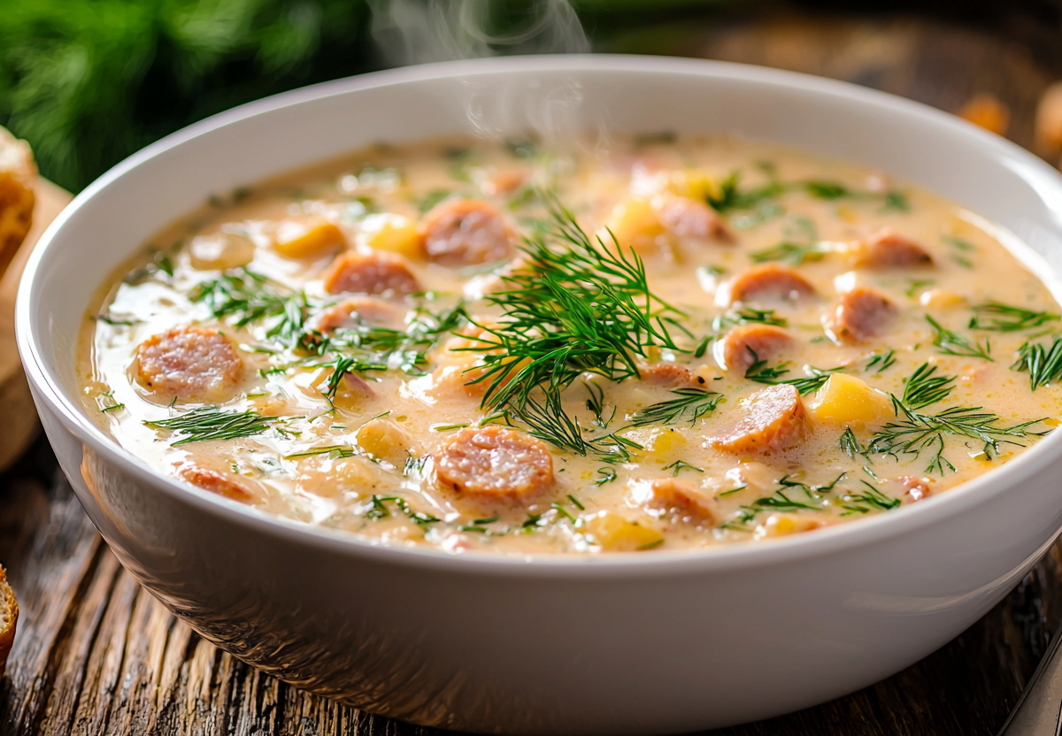 Антипохмельный суп за 15 минут — готовлю после Нового года или удачных выходных. Вкуснота с сыром и охотничьими колбасками поднимет на ноги. Он покоряет густой текстурой и яркими копчеными нотками. Для него понадобится картофель — 2–3 средние штуки, нарезанные кубиками, лук — 1–2 шт. мелкой нарезки, одна морковь, натертая или нарезанная соломкой, три охотничьи колбаски, порезанные кружочками, немного копченой паприки, 1,5–2 литра воды, 3–4 кубика плавленого сыра или примерно 3 столовые ложки, а также соль, черный перец, зелень и сухарики для подачи.
