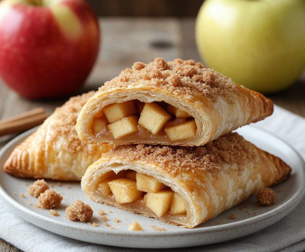 Для приготовления вам понадобится: для теста и крошки: 200 г муки, 100 г холодного сливочного масла, 50 г сахара, 1 яйцо; для начинки: 2 крупных яблока, 30 г сахара, 1 ч. л. корицы, лимонный сок. Масло нарежьте кубиками. Муку смешайте с сахаром, добавьте масло и разотрите руками в мелкую крошку. Отделите примерно треть смеси для посыпки. В оставшуюся массу добавьте яйцо и быстро замесите тесто. Раскатайте его в пласт толщиной 5 мм и разрежьте на квадраты. Яблоки очистите и нарежьте мелкими кубиками, смешайте с сахаром, корицей и соком лимона. На середину каждого квадрата выложите начинку, защипните края, формируя «кармашки». Выложите их на противень с пергаментом, сверху густо посыпьте заготовленной сухой крошкой. Выпекайте 15–18 минут в духовке, разогретой до 190 °C, до золотистого цвета. Подавайте тёплыми со взбитыми сливками или шариком мороженого.