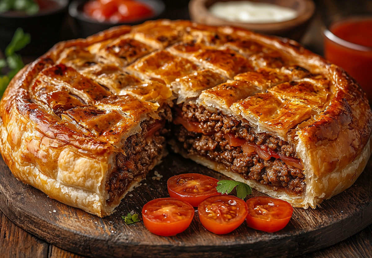Этот ароматный пирог с золотистой корочкой станет звездой любого застолья. Нежное идеальное тесто и сочная мясная начинка понравятся даже самым привередливым гурманам.