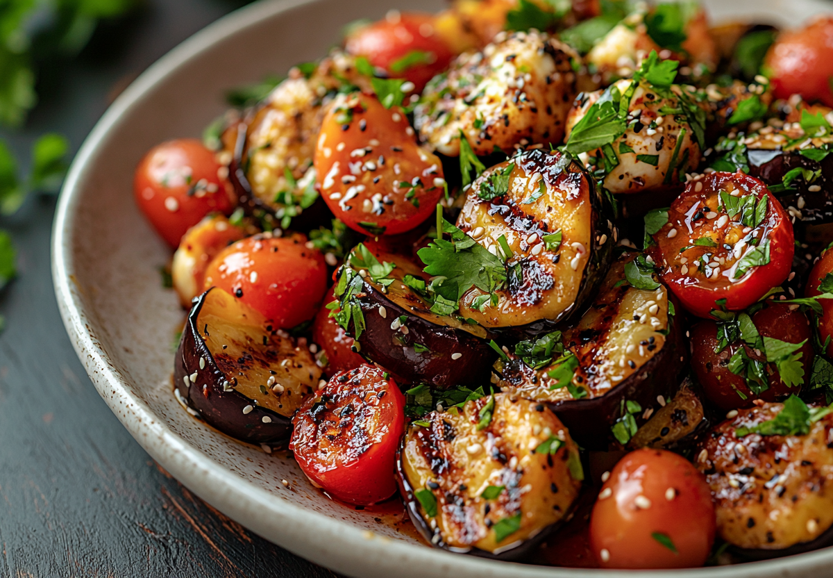 Этот салат с хрустящими баклажанами — идеальное сочетание текстур: нежная моцарелла, сочные помидоры и хрустящие кусочки баклажанов. Готовится за 20 минут, но вкус получается настолько насыщенным, что кажется, будто вы провели на кухне целый час!