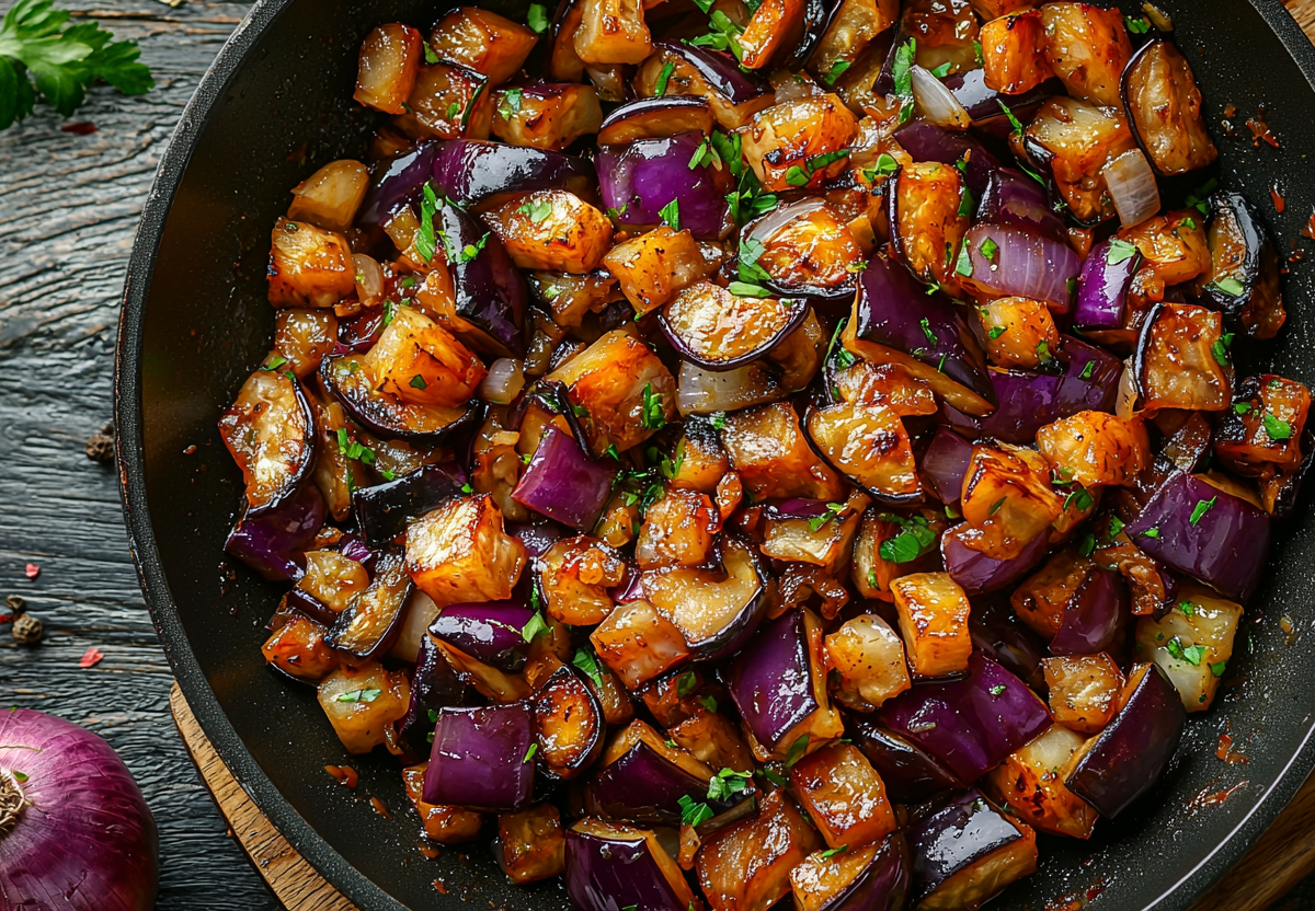 Баклажаны, жаренные «как грибы» — это удивительный гарнир с плотной текстурой и насыщенным лесным ароматом, где овощи действительно приобретают вкус грибов. Секрет в особом способе нарезки и приготовлении.