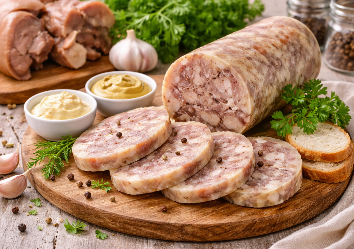 Если хочется плотной мясной закуски без лишних добавок, готовлю домашний зельц. Получается ароматный, насыщенный и по-настоящему мясной продукт — отличный вариант вместо магазинной колбасы. Готовится несложно, а вкус — как в деревне у бабушки.