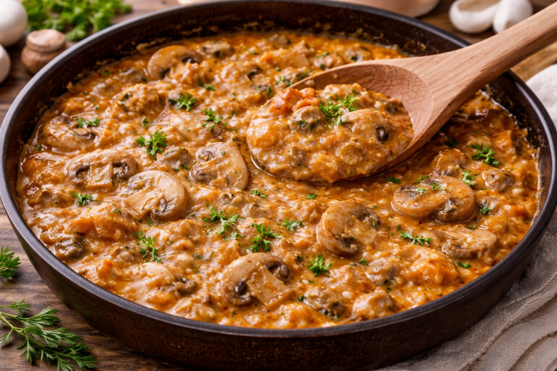 Эта подливка — как привет из детства. Простая, ароматная и такая родная, что одной ложкой не обойтись. Я готовлю ее без мяса, но с грибами — получается сытно, насыщенно и по-домашнему. Идеально подходит к макаронам, пюре, гречке или рису. Минимум продуктов, а вкус тот самый, «как в столовой», только еще лучше.