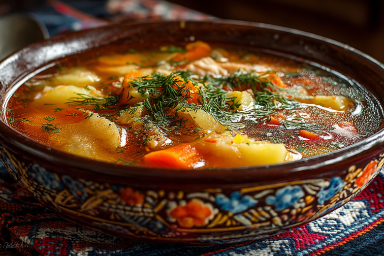 Получается обалденная вкуснятина: насыщенный бульон с мясными волокнами, мягкая картошка, золотистый лук и сладковатая морковь — все это создает тот самый вкус «супа из топора», который согревает и насыщает.