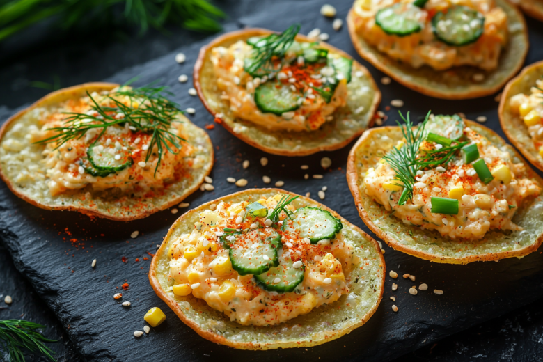 Когда гости уже на пороге, а времени на приготовление сложных канапе нет, на помощь приходит гениально простая и эффектная идея — закуски на картофельных чипсах. Они сочетают в себе три главных качества идеального фуршетного блюда: невероятную скорость приготовления, яркий контраст текстур и универсальный вкус, который нравится всем. Хрустящая, солоноватая основа из чипсов заменяет традиционные тарталетки или хлеб, а нежная, сливочная начинка с сочной кукурузой и свежими овощами создаёт идеальный баланс. Эти мини-закуски не требуют выпечки, собираются за минуты и гарантированно исчезают с подноса в первую очередь, вызывая искреннее удивление и восторг.