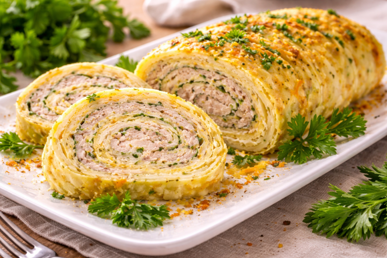 Этот рулет — настоящая находка, когда хочется приготовить что-то необычное из простых продуктов. Капуста, курица и немного сыра — а в итоге получается сочная ароматная закуска, которую не стыдно поставить даже на праздничный стол.