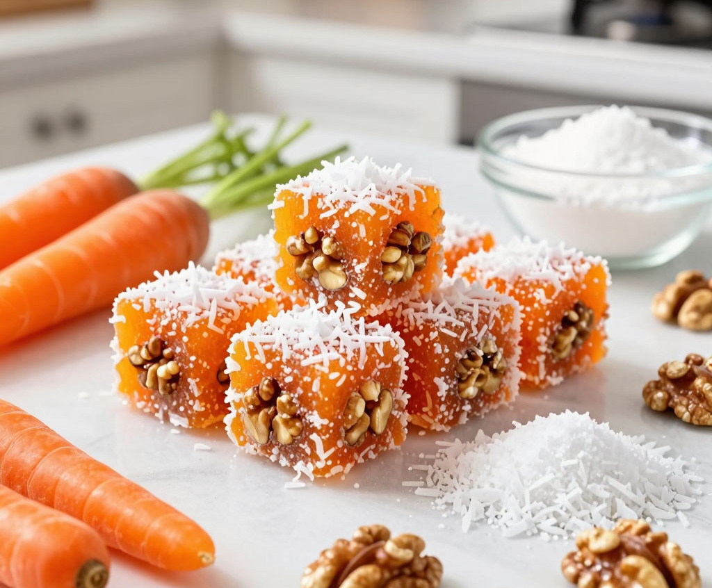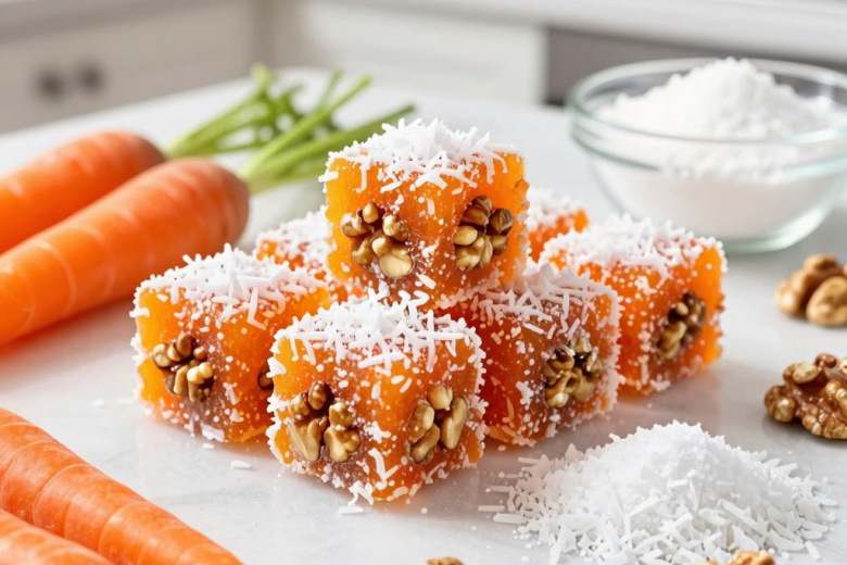 Беру морковь, сахар и орехи — и готовлю турецкое джезерье, которое напоминает рахат-лукум, но готовится проще и быстрее. Получается обалденная вкуснятина: нежные, слегка тягучие морковные конфеты с хрустящими орешками и ароматной кокосовой стружкой, которые буквально тают во рту и исчезают со стола быстрее, чем вы успеваете их приготовить.