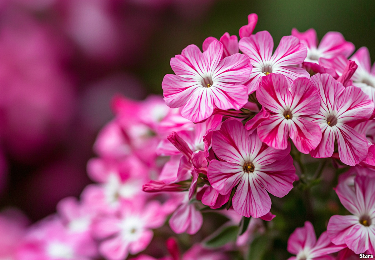 В мире флоксов редко встретишь такую оригинальную расцветку! Старс энд Страйпс — это настоящая звезда с полосатыми лепестками, где на белом фоне проступают яркие малиново-розовые штрихи. Каждый цветок уникален, словно художник вручную расписал его тонкой кистью. Компактный куст высотой 50–70 см усыпан этими удивительными соцветиями, создавая эффект праздничного конфетти. Но главное — этот флокс не только красив, но и невероятно вынослив. Он устойчив к мучнистой росе, прекрасно зимует без укрытия и цветет с июля до сентября, не теряя декоративности даже в непогоду.