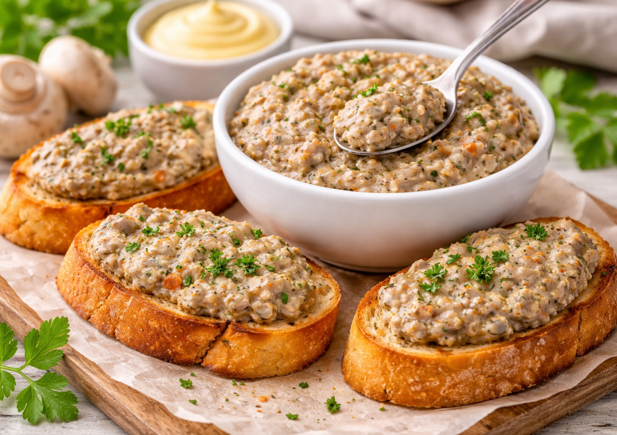 Эта грибная икра получается ароматной, нежной и очень насыщенной по вкусу. Делается она из простых шампиньонов, но после приготовления вкус получается как у настоящей домашней закуски. Я часто готовлю её заранее и храню в холодильнике — потом остаётся только поджарить хлеб и быстро собрать вкусный перекус.