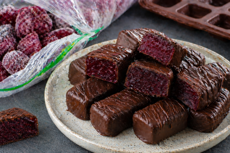 Если в морозилке остались ягоды с прошлого сезона, самое время пустить их в дело. Из них получаются простые и очень вкусные конфеты без сахара, которые легко заменяют магазинные сладости. Готовятся быстро, а вкус получается насыщенный, ягодный и с легкой шоколадной ноткой.