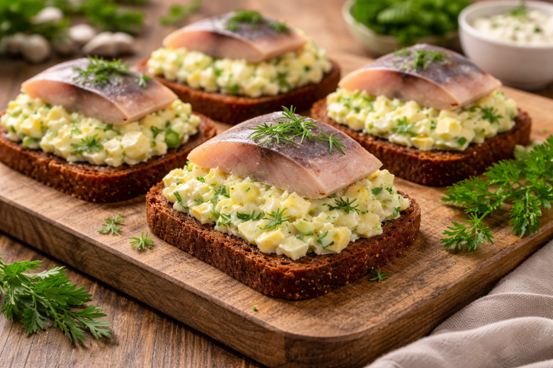 Хрустящий хлеб, нежная намазка и солоноватая селёдка создают тот самый баланс, который нравится всем без исключения.