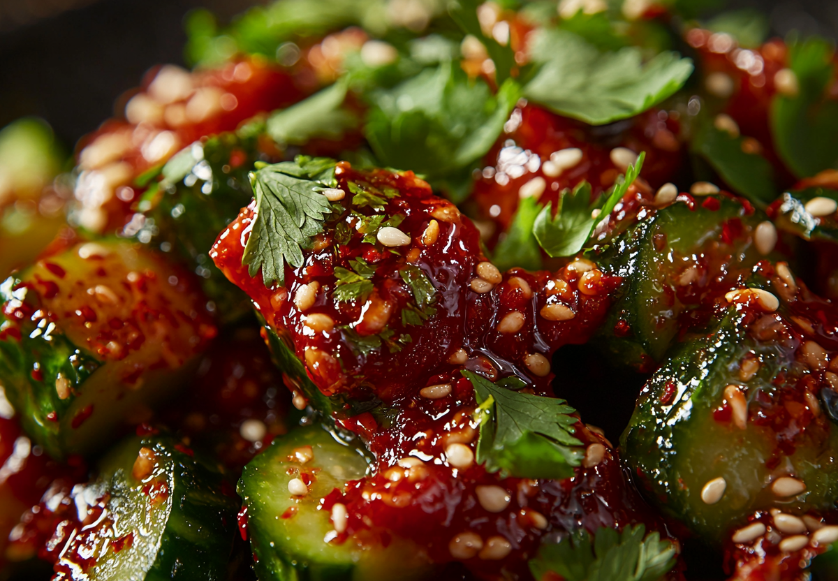 Битые огурцы по-корейски — взрывная закуска за 15 минут! Просто и вкусно. Эта пикантная закуска покорит вас сочетанием свежести огурцов, остроты чеснока и сладко-пряного соуса чили. Идеальный вариант для тех, кто любит яркие азиатские вкусы, но не хочет долго возиться с приготовлением. Всего несколько простых движений — и перед вами шедевр.