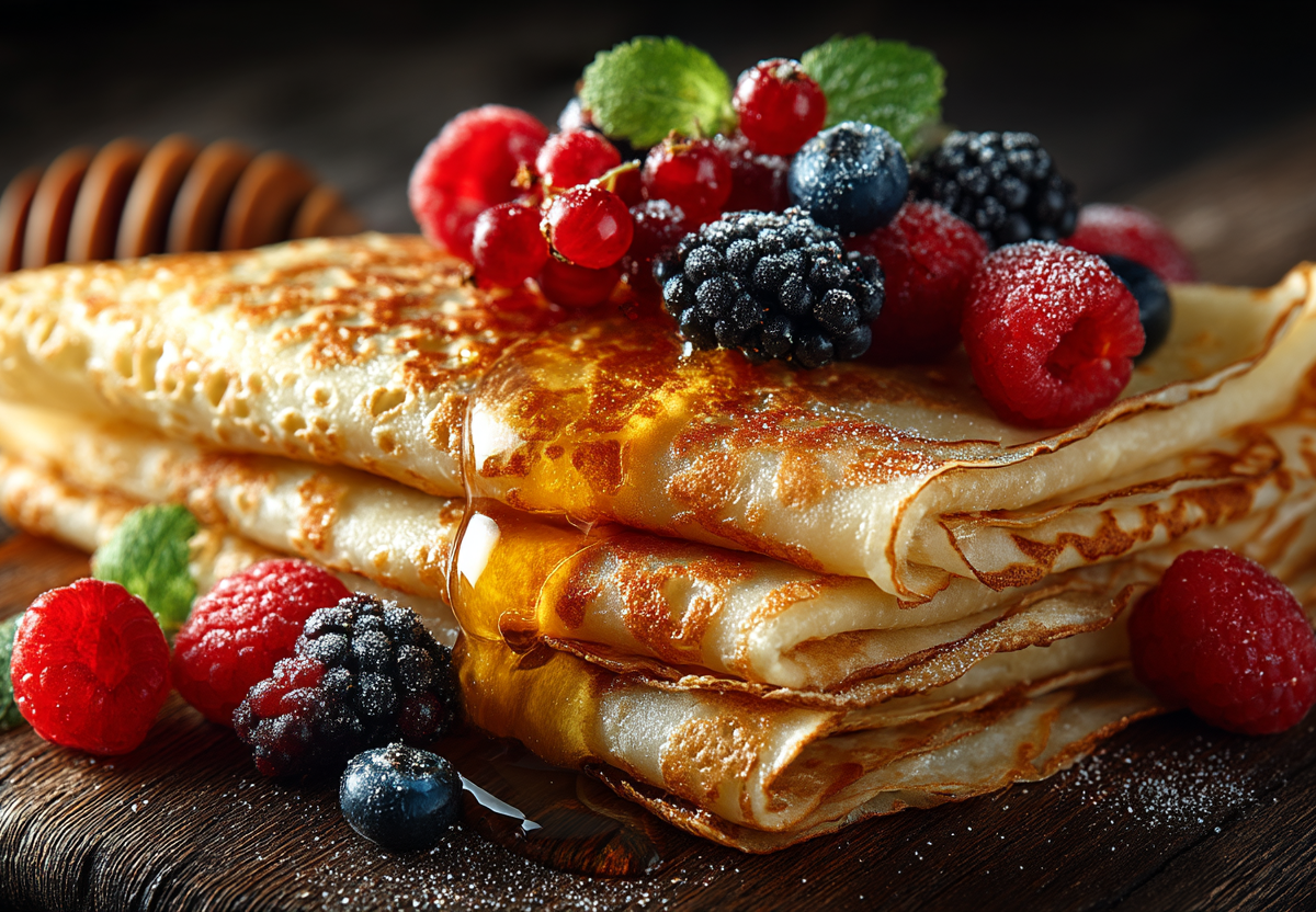 Этот рецепт блинов — классика, доведенная до совершенства одним простым приемом. Правило «трех стаканов» легко запомнить, а добавление кипятка в тесто превращает обычные блины в тонкие, эластичные полотна, которые никогда не рвутся на сковороде.