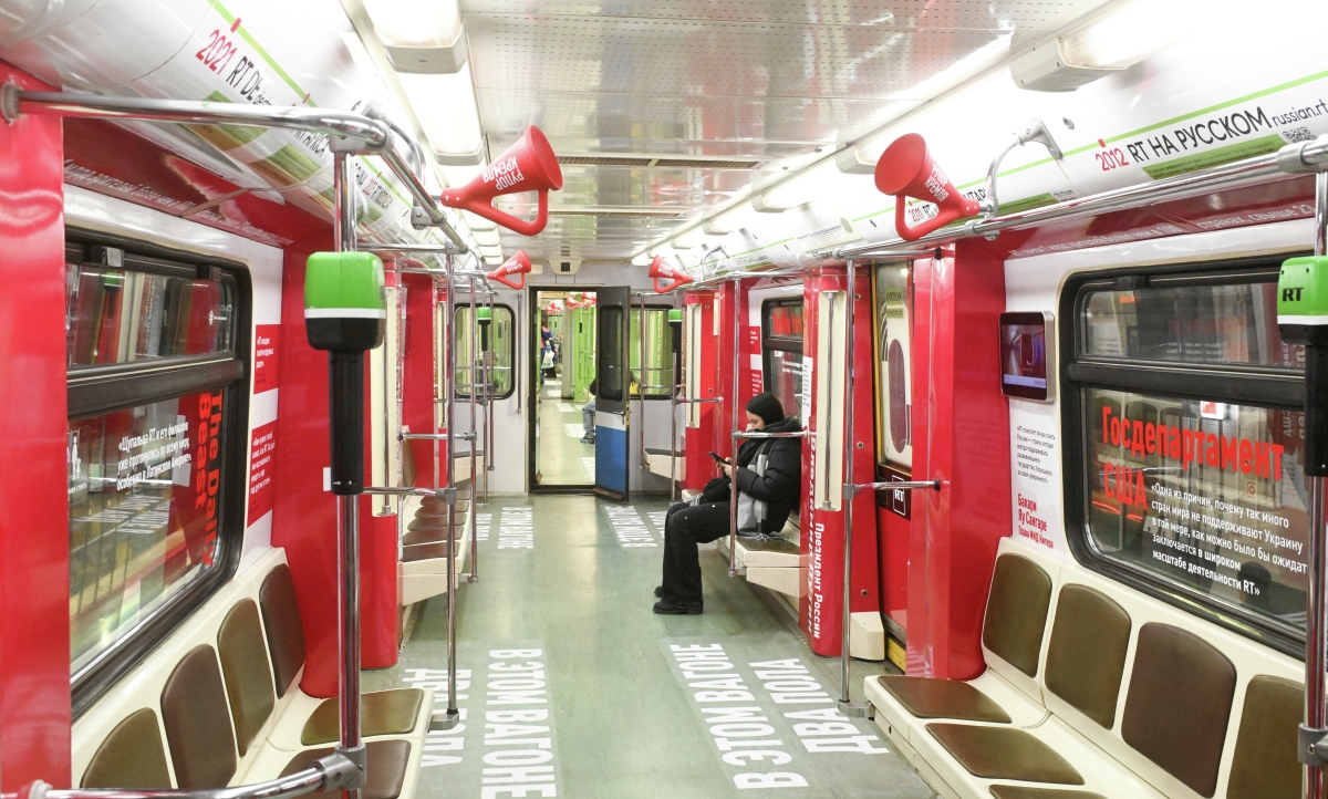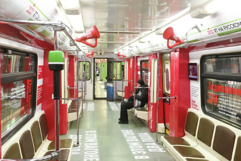 Тематический поезд московского метро, оформленный к 20-летию телеканала RT Тематический поезд московского метро, оформленный к 20-летию телеканала RT Фото: Михаил Воскресенский/РИА Новости
