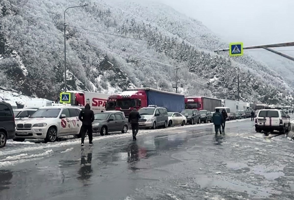 Более двух тысяч фур ожидают проезда на закрытом из-за непогоды КПП «Ларс»