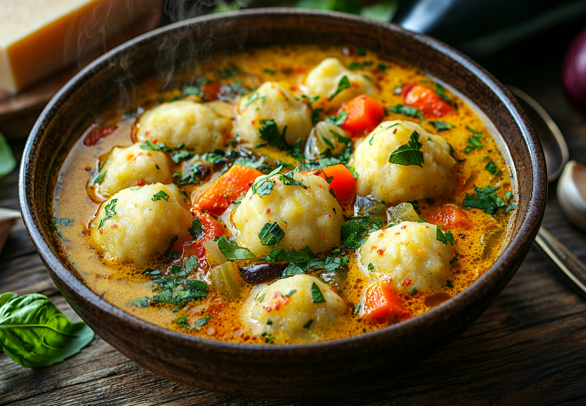 Болгарский суп с сырными шариками и баклажаном! Без мяса, но безумно вкусно, и добавки попросят все! Этот ароматный суп — идеальное сочетание лёгкости и насыщенного вкуса. Готовится быстро, но получается по-настоящему вкусным и сытным. Сырные шарики делают блюдо особенным — они тают во рту, придавая супу нежную сливочную нотку.