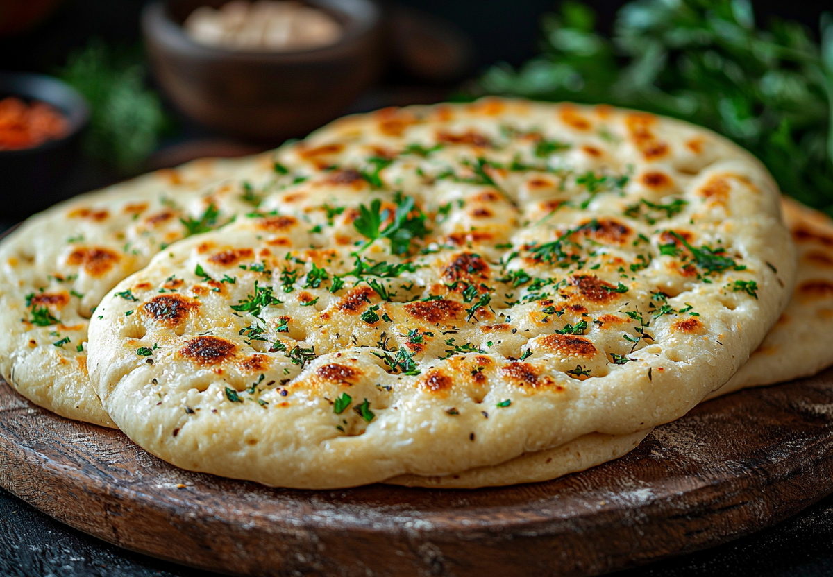 250 мл кефира комнатной температуры смешиваю с 10 г сухих дрожжей и 1 ч. л. сахара, оставляю на 10 минут для активации. Добавляю 500 г муки и 1 ч. л. соли, замешиваю мягкое эластичное тесто. Накрываю полотенцем и оставляю в теплом месте на 40 минут для подъема. Подошедшее тесто обминаю и делю на 8 равных частей. Каждую часть раскатываю в тонкую лепешку толщиной 3–4 мм, делаю надрезы по краям ножом. Разогреваю 100 мл растительного масла в сковороде и жарю лепешки по 2–3 минуты с каждой стороны до золотистого цвета. Подаю горячими, смазав сливочным маслом.