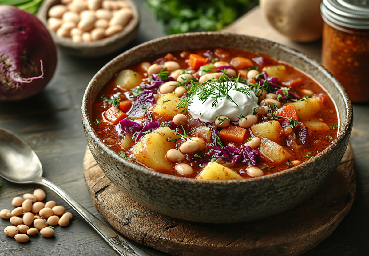 Борщ без мяса с фасолью! Сытный и ароматный без долгого бульона. Этот насыщенный борщ с фасолью порадует вас богатым вкусом и питательностью даже без мяса. Идеальное блюдо для постного меню или полезного обеда!