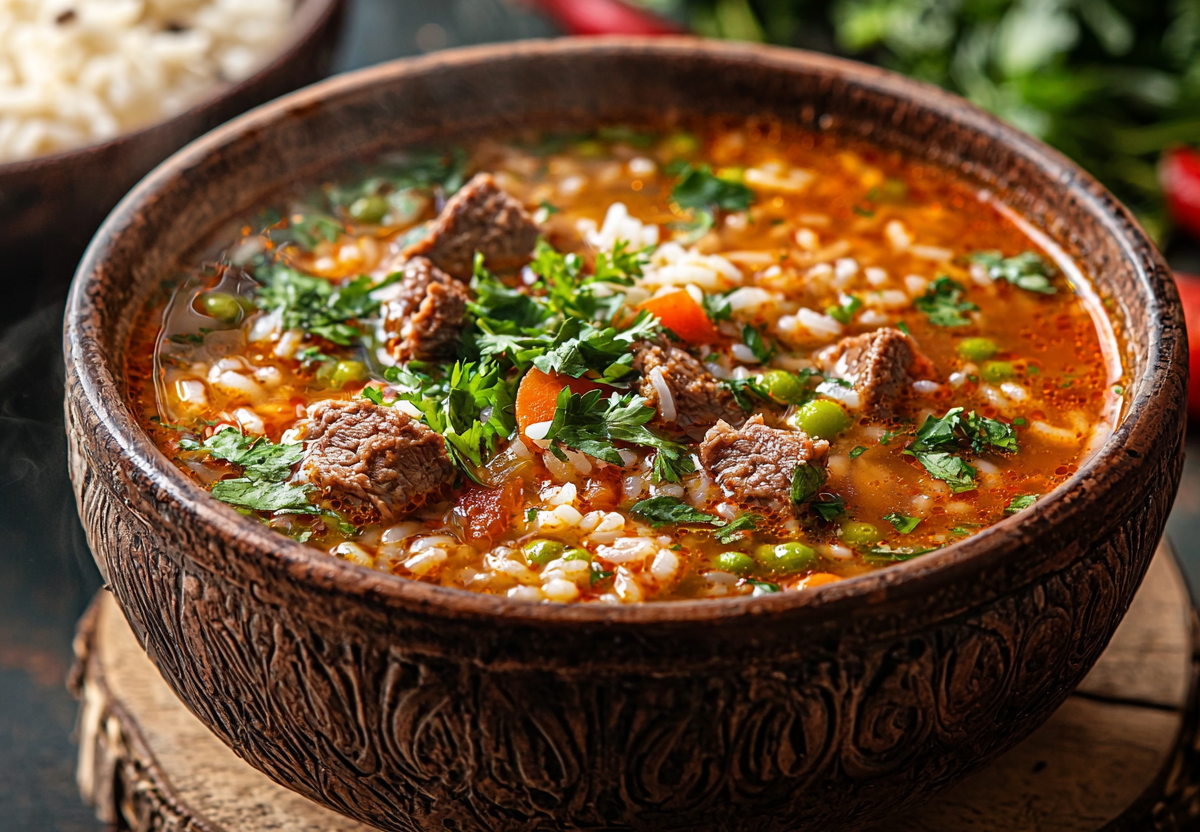 Машхурда — густой сытный суп, который любят в Узбекистане. Он получается особенно ароматным благодаря сочетанию мяса, маша, риса и овощей. Отличный выбор для обеда, когда хочется чего-то наваристого и домашнего.