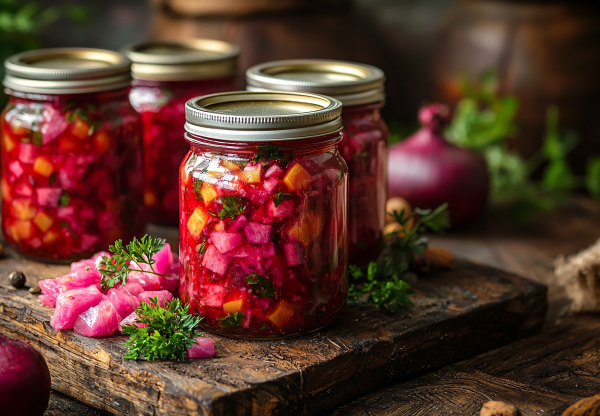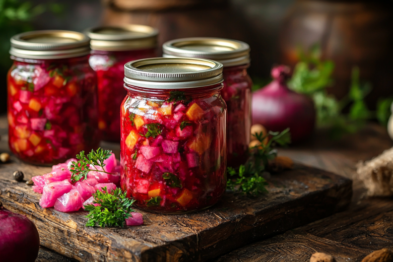 Готовлю я так: сначала отвариваю до мягкости 500 граммов говядины, мясо вынимаю и нарезаю кубиками, а бульон сохраняю. Один килограмм свеклы и 300 граммов моркови натираю на крупной терке, 200 граммов лука мелко режу. Свеклу отдельно тушу с томатной пастой — это главный секрет красивого цвета. В большой кастрюле смешиваю свеклу, нашинкованную капусту, морковь с луком, мясо и специи. Заливаю все бульоном, добавляю соль и немного сахара для баланса, кипячу минут пятнадцать. Горячий борщ сразу раскладываю по стерильным банкам, закатываю крышками и укутываю до полного остывания. Зимой просто вливаю содержимое банки в кастрюлю, разбавляю водой по вкусу и довожу до кипения. Аромат настоящего борща наполняет весь дом за считаные минуты!
