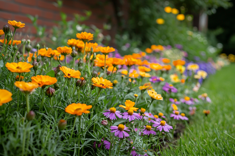 Идеальным выбором станет календула (ноготки). Ее семена отлично переносят возвратные заморозки, всходят дружно и быстро. После появления всходов календула развивает мощную корневую систему, которая помогает ей добывать влагу из глубоких слоев почвы. Она будет медленно расти, дожидаясь вашего возвращения, а к середине лета обязательно зацветет яркими оранжевыми или желтыми цветами.