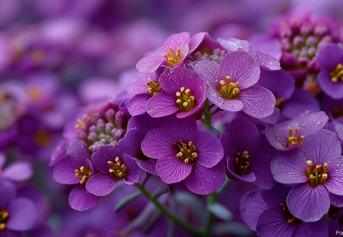 Бросьте семена в грунт в апреле — и в июне ваш сад накроется плотным фиолетово-пурпурным ковром, источающим сладкий медовый аромат. Алиссум «Восточные ночи» (Lobularia maritima 'Eastern Nights') — это низкорослое почвопокровное растение высотой всего 8–15 см, которое образует густоветвистые, стелющиеся кустики.