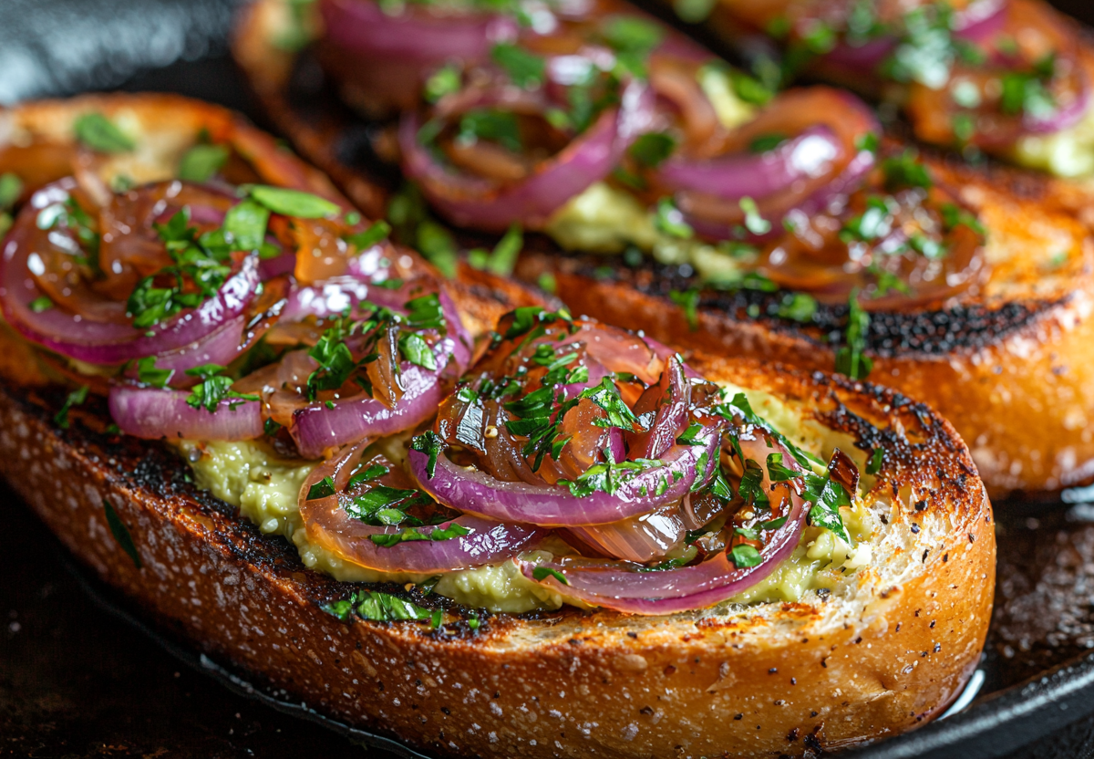 Брускетта — классическая итальянская закуска, которую можно легко адаптировать под любой вкус. Если вы хотите удивить гостей или побаловать себя чем-то новым, попробуйте приготовить необычную брускетту с кремом из авокадо, карамелизированным луком и мягким сыром.