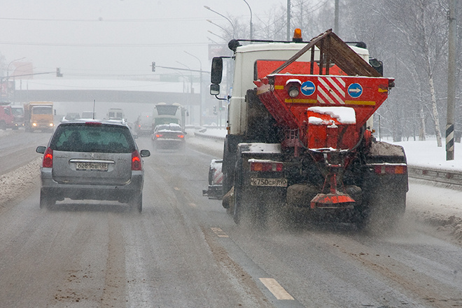 При работе бульдозера обнаружилось, что вместе с ледяной коркой отрывается и асфальтное покрытие. Так что коммунальные службы решили вернуться к традиционному методу — обработке реагентами.