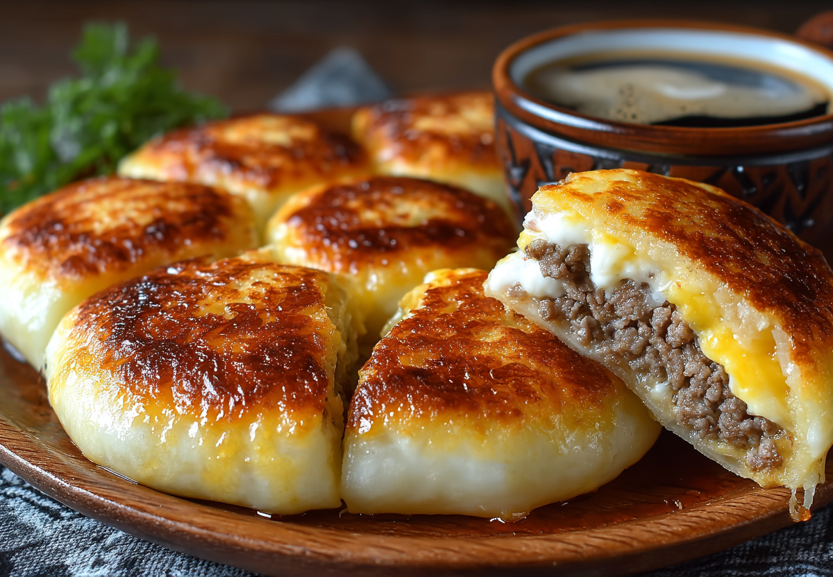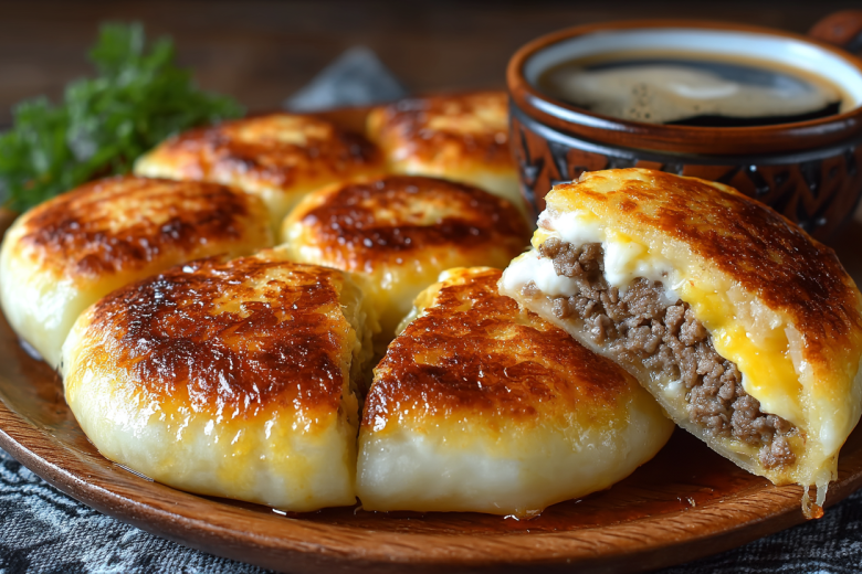 Получается обалденная вкуснятина: мягкие румяные булочки из нежного теста, а внутри — сочная мясная начинка с луком и расплавленной сырной шапкой. Каждая булочка легко отделяется, резать пирог не нужно.