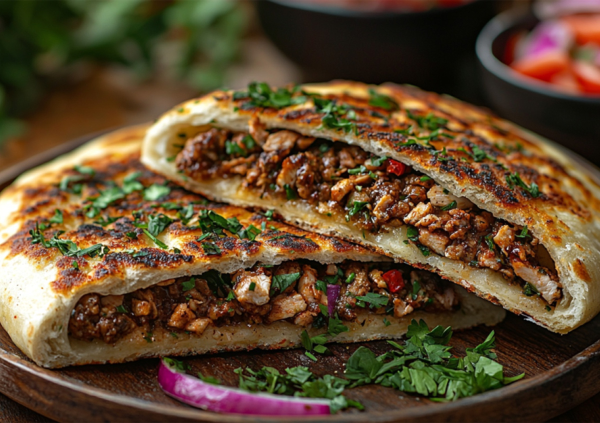 Раскатайте тесто на лепешки толщиной 5 мм, выложите начинку, защипните края как у вареников и слегка расплющите. Обжаривайте на разогретой сковороде с растительным маслом по 3–4 минуты с каждой стороны под крышкой. Кефирное тесто дает нежную пористую текстуру, а сочный фарш с зеленью создает идеальный баланс вкусов.
