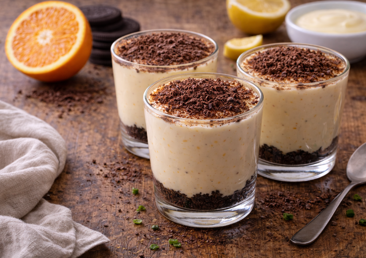 Этот нежный молочный десерт выглядит как из хорошей кофейни, а готовится из самых простых продуктов. Шоколадная основа, воздушный цитрусовый крем и легкая кислинка делают его по-настоящему изысканным — гости всегда просят добавку. Десерт получается мягким, сливочным и очень ароматным. А главное — никакой духовки и сложных техник не требуется.