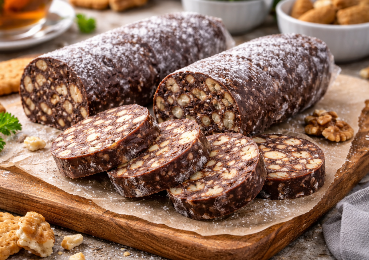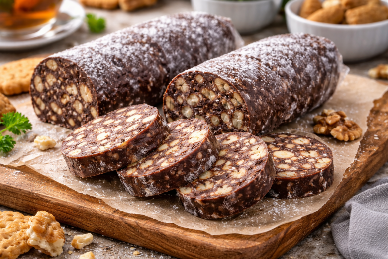 Сейчас в интернете можно найти десятки вариантов сладкой колбаски — с орехами, маршмеллоу, сгущенкой и чем угодно. Но для меня самый вкусный и по-настоящему теплый рецепт — тот самый, из детства. Его готовила моя прабабушка, когда хотелось чего-то сладкого без духовки и лишних хлопот. Простые продукты, минимум действий — и на выходе десерт, который режется ломтиками, как настоящая колбаса, и идеально подходит к чаю.