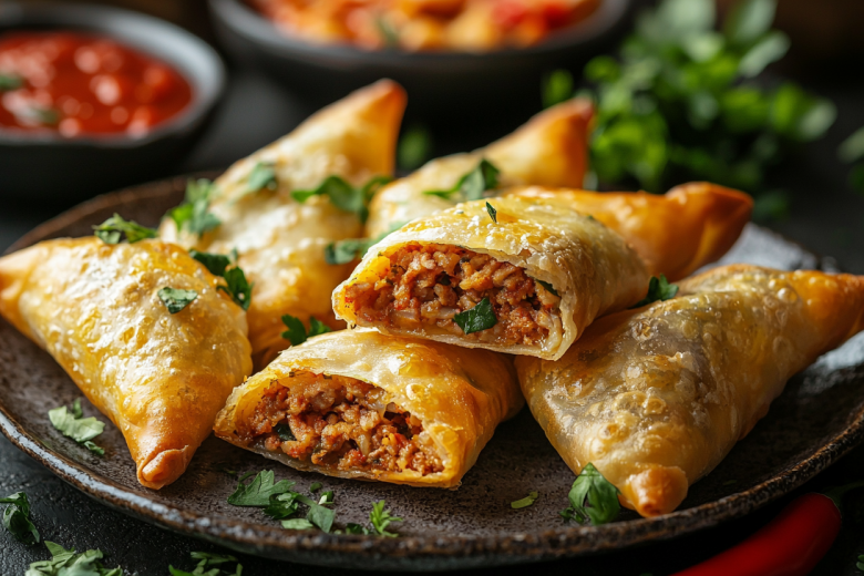Вкус этих чебуреков — хрустящая, нежная оболочка из рисовой бумаги и сочная, ароматная мясная начинка с луком. Они получаются менее жирными, чем традиционные, но такие же вкусные. Подавайте со сметаной или соевым соусом с чесноком и зеленью для полного наслаждения.