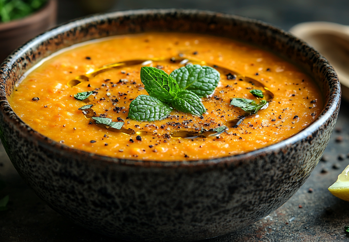 Густой, насыщенный чечевичный суп-пюре с томатной пастой — это настоящее спасение для холодных дней. Красная чечевица быстро разваривается, создавая бархатистую текстуру, а ароматные овощи придают супу потрясающий вкус. Это блюдо можно есть в Великий пост.