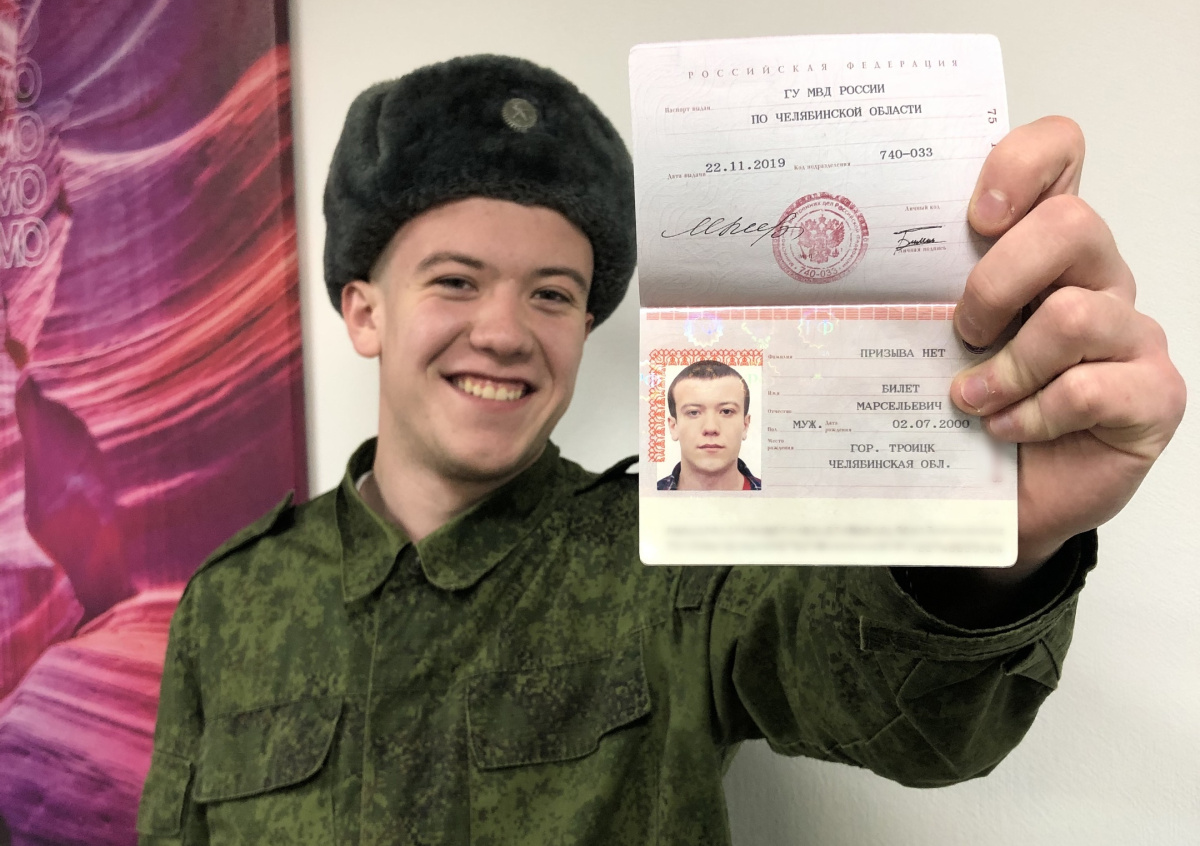 Житель Троицка Роман Грошев, который ради 200 килограмм пельменей сменил имя на Пельмень Кондольский, снова поменял паспортные данные. Теперь мужчину зовут Билет Марсельевич Призыва Нет.