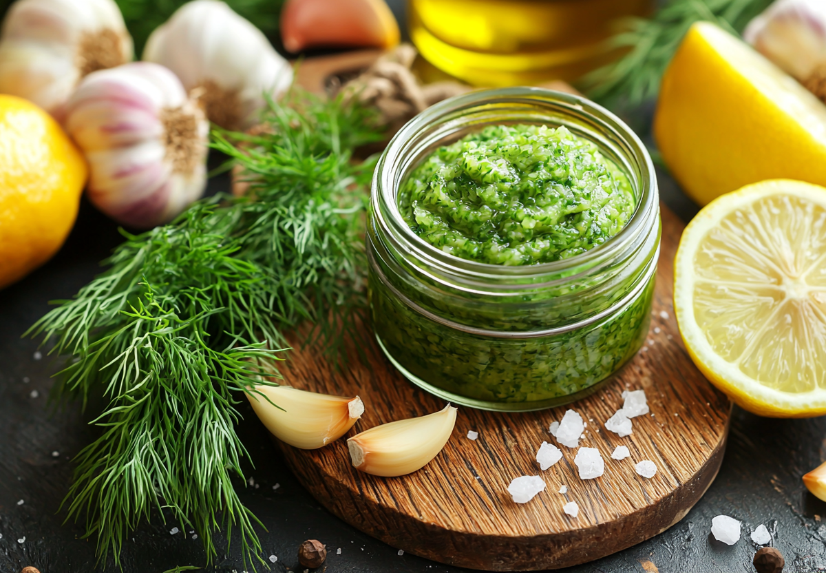 Первая паста — классическая, с лимонной кислинкой, вторая — с укропом и яблочным уксусом для любителей ярких вкусов. Оба варианта одинаково хороши для мяса, рыбы, овощей и даже простых бутербродов.