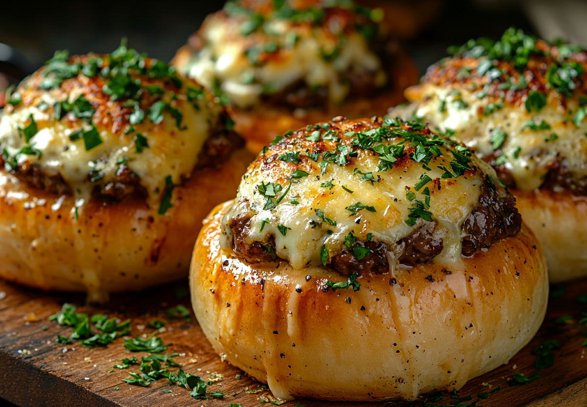 Чесночные булочки с говядиной и сыром — сытно, вкусно и необычно! Аппетитные хрустящие булочки с ароматной начинкой из сочной говядины и расплавленного сыра станут хитом любого застолья. Это блюдо идеально подойдет для семейного ужина или встречи гостей.