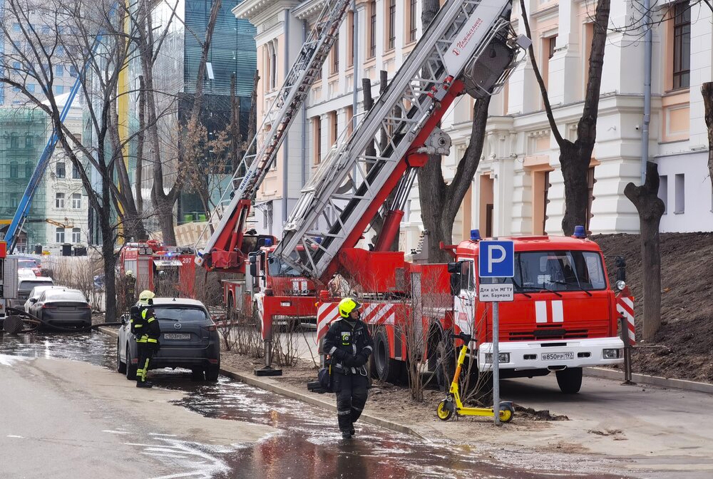 «Пожар в МГТУ им. Баумана в Москве. Горит кровля четвертого здания в Бригадирском переулке. Там находится здание бывшей химической лаборатории Императорского Московского технического училища. Припаркованные машины мешают поставить подъемные механизмы. Разгорается обрешетник. Проводится эвакуация. Площадь возгорания 20 «квадратов». На месте работают пожарные расчеты», — сообщил Telegram-канал Mash.