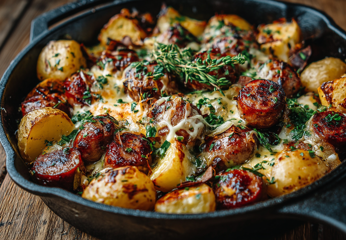 Сочетание картофеля и охотничьих колбасок — проверенная классика, но в этом рецепте она раскрывается по-новому. Легкая варка картофеля и томление под фольгой гарантируют сочность и насыщенный вкус.