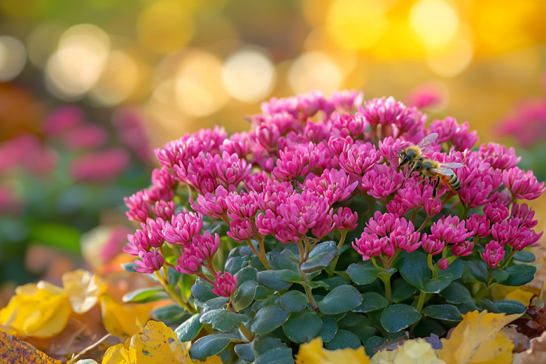 Очиток представляет собой многолетнее растение, отличающееся поздним периодом цветения. Это растение сохраняет декоративность до глубокой осени, когда большинство других культур уже завершили вегетационный сезон. Его способность цвести в условиях пониженных температур делает его ценным элементом осеннего ландшафта.