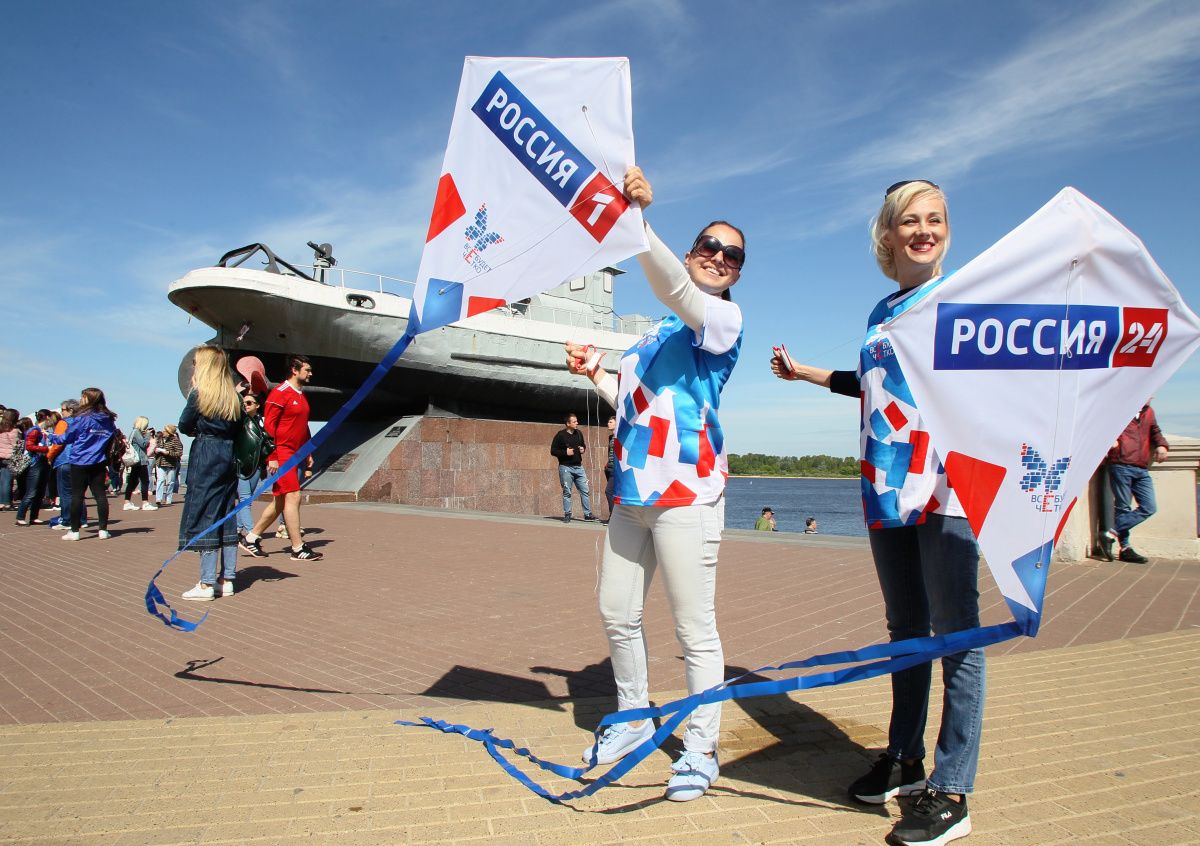 После участники акции запустили в небо 22 воздушных змея, которые были брендированы логотипами телеканалов, доступных в мультиплексах цифрового телевещания, а также гербом Нижегородской области и «бабочкой», являющейся символом цифрового телевидения, передаёт РИА Новости.