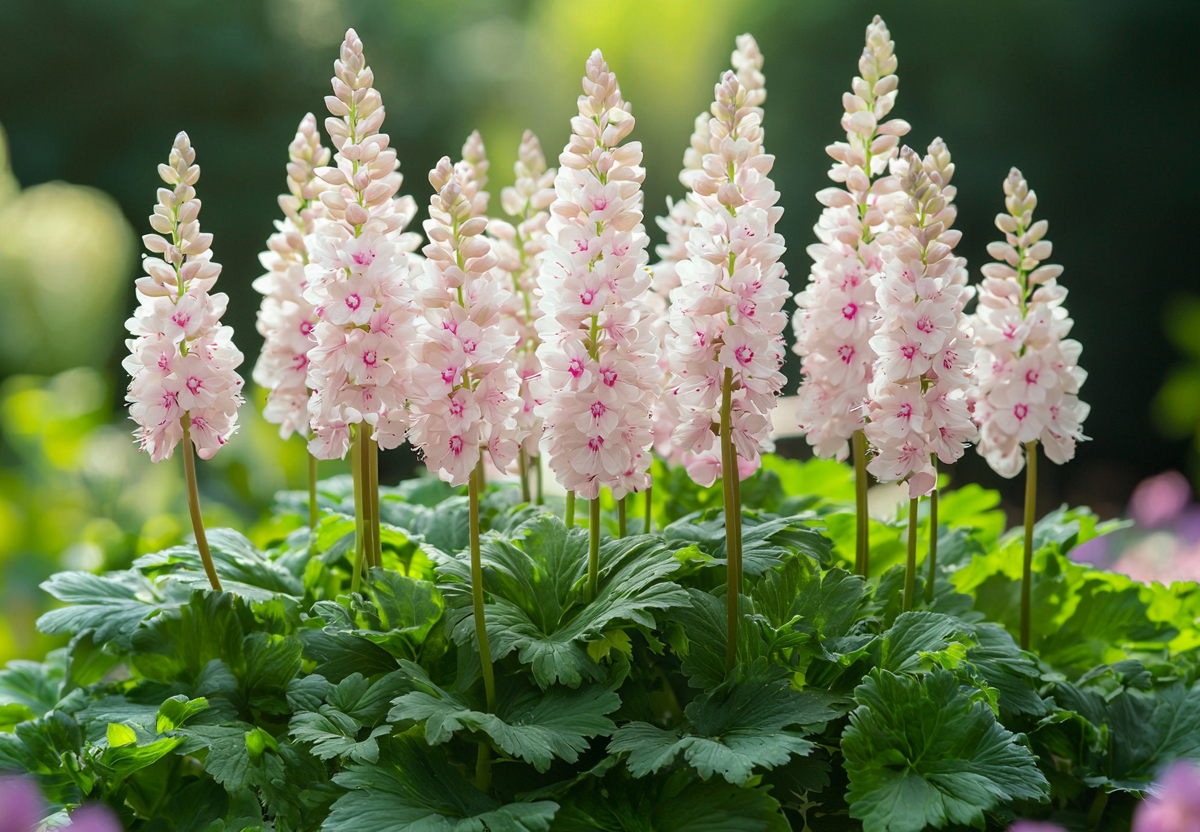 В то время как большинство растений в глубокой тени лишь выживают, тиарелла с мая по июнь покрывается облаком изящных белых или светло-розовых пушистых соцветий. Ее резные листья, часто с бордовыми узорами вдоль жилок, сохраняют декоративность с ранней весны до поздней осени, а осенью вспыхивают багряными и медными оттенками.