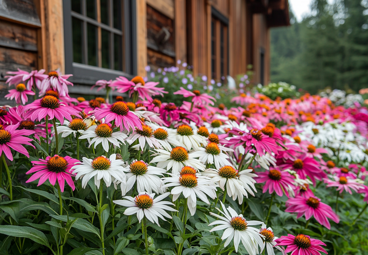 Цветком, стабильно цветущим в любую погоду, является эхинацея пурпурная — выносливый многолетник, который демонстрирует пышное и длительное цветение как в аномальную жару, так и в прохладное дождливое лето.