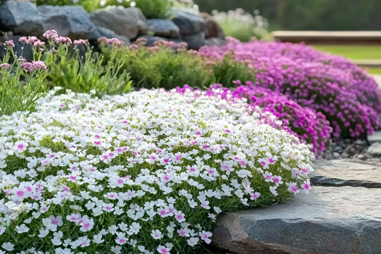 Его главное преимущество — способность превращать самые неприглядные уголки участка в роскошный цветущий ковер высотой всего 15–30 см, который с апреля по июнь усыпан мелкими душистыми цветами белого, розового или лилового оттенка.