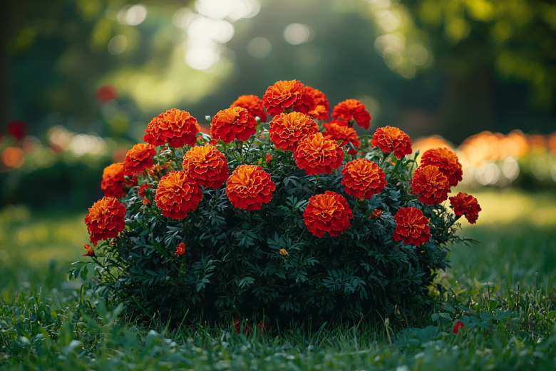Его секрет — мощная корневая система и особое строение соцветий, которые не размокают и не теряют форму даже в сильную непогоду. Бархатцы не только выдерживают испытания стихиями, но и активно цветут в любых условиях, создавая плотные солнечные ковры из оранжевых, желтых и красноватых цветков. Они выделяют фитонциды, очищая почву от вредителей, что делает их не просто украшением, но и полезным соседом для других растений.