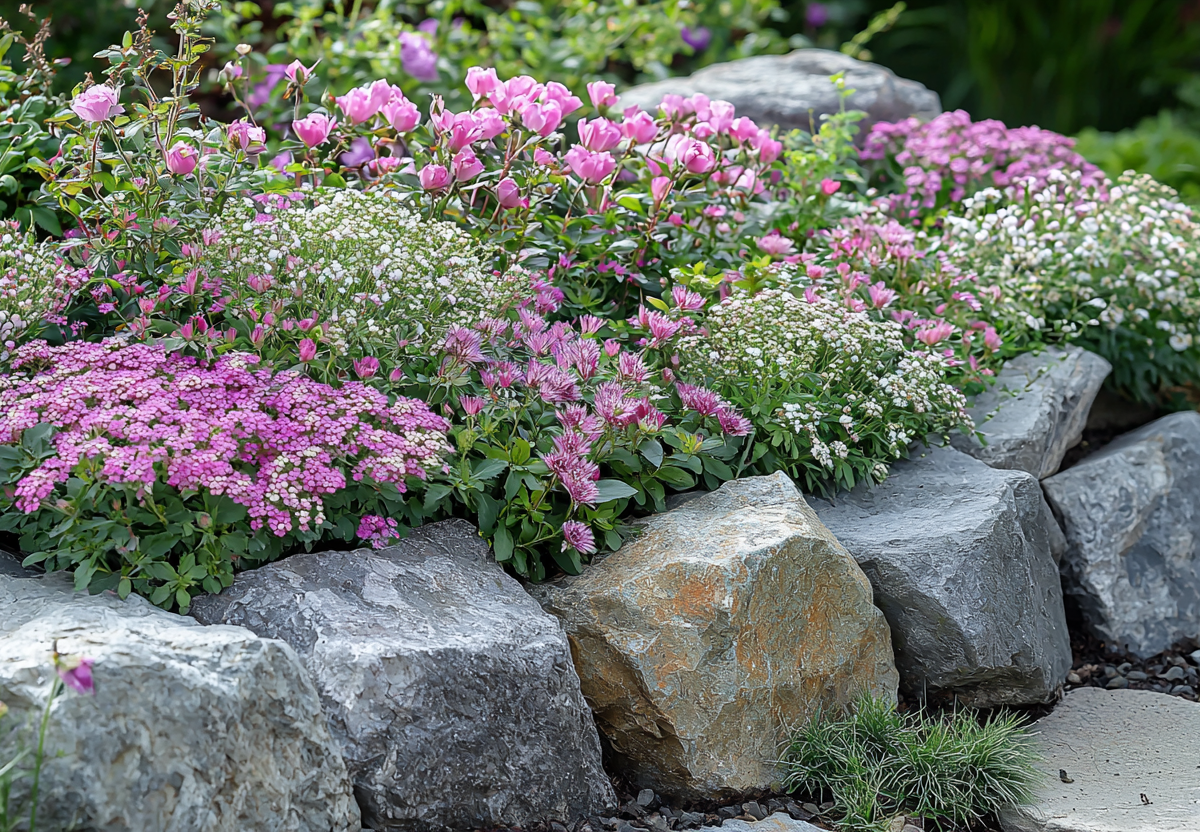 2. Армерия приморская (Armeria maritima). Компактное растение с шарообразными соцветиями, идеальное для альпийских горок. Цветет с мая по август.